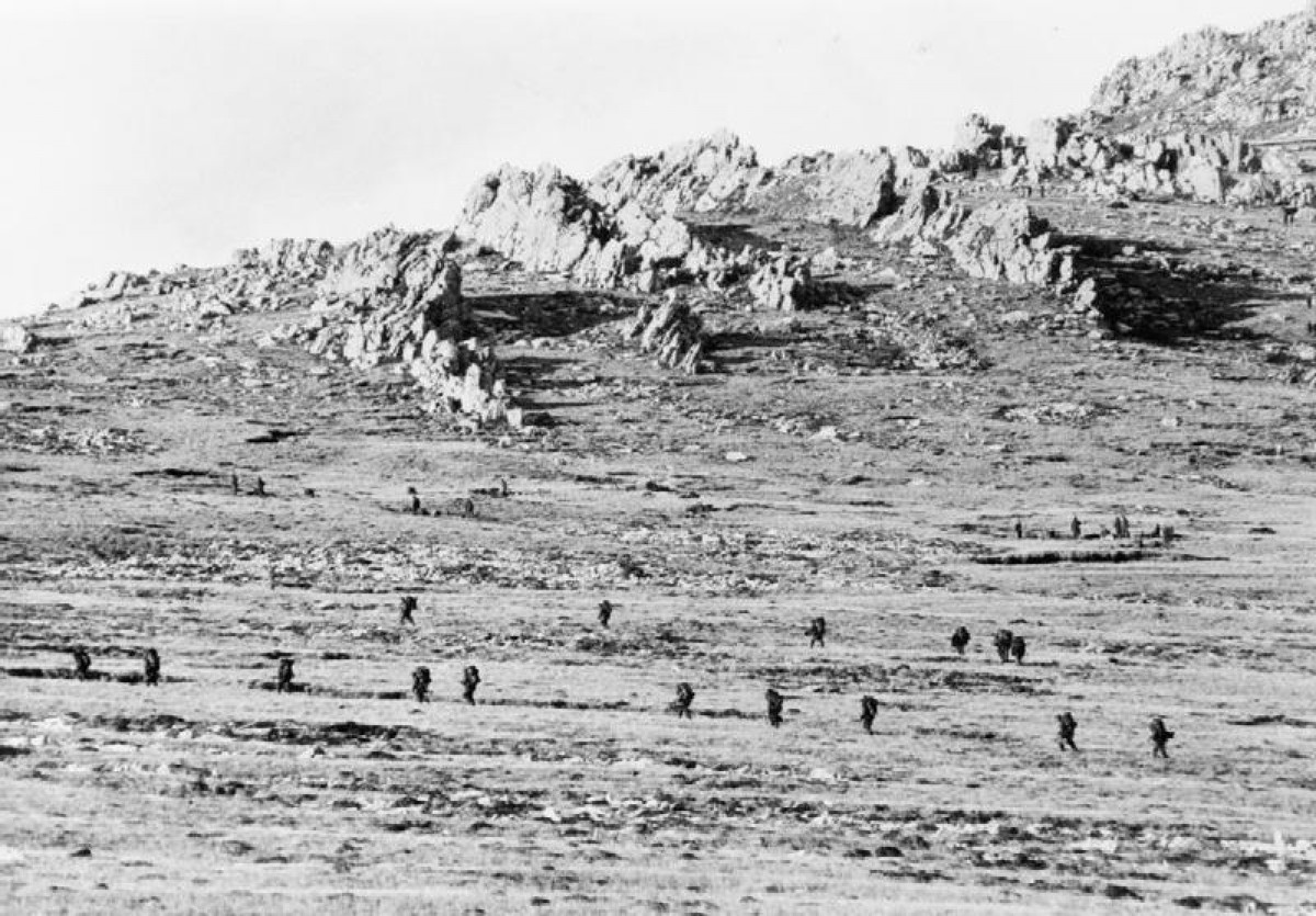 Despite the government’s concern that the deployment of Gurkha troops will erode domestic and international support for the British cause--Gurkhas have fewer rights and benefits than soldiers who are citizens of the United Kingdom--the Gurkhas are sent to the Falklands to join the 5th Infantry Brigade, which also included the Scots and Welsh Guards. They arrive at the settlement of San Carlos and face a 90 kilometre-long ‘yomp’ (Royal Marine slang for a long march in full gear) towards Stanley through the mountains. Despite the horrendous climate and the misfortune of being dropped in the wrong location, they go into battle eager to fight. The Argentines, however, have fled, supposedly because of legends of Gurkha ferocity, and as a result, the Gurkhas do not play a major role in the Falklands War.