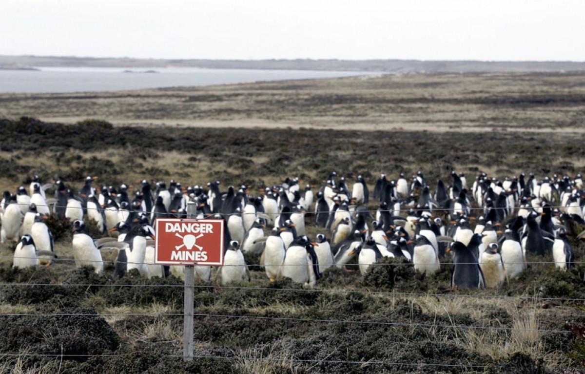 Falling under the jurisdiction of the United Kingdom, the Falklands is obliged to clear all of its mined areas by the first of March, 2009. Many islanders, however, do not wish to comply with the agreement. In a petition known as ‘The Falklands Initiative’, they state that the economic, social and humanitarian impact of the minefields on the islands is negligible and that clearing the mines on the Falklands is not an urgent matter. The petition is also based on the idea that their compliance with the Ottawa Treaty would send the wrong signals to countries that need more assistance clearing their minefields, such as Cambodia, Zimbabwe, Afghanistan and Angola, where civilians are killed and injured daily. All mined areas on the Falkland Islands are fenced and marked to protect civilians. Although animals such as sheep are killed occasionally, there has never been a civilian casualty. In fact, the minefields offer protection to penguins, which are light enough to walk over mines. Recently, mined beaches around Stanley have turned into popular penguin breeding grounds.