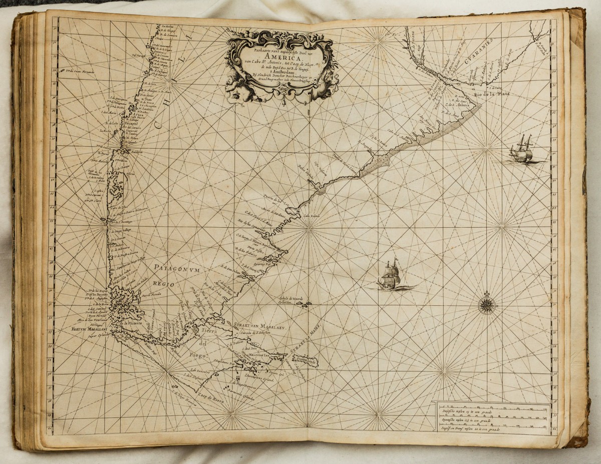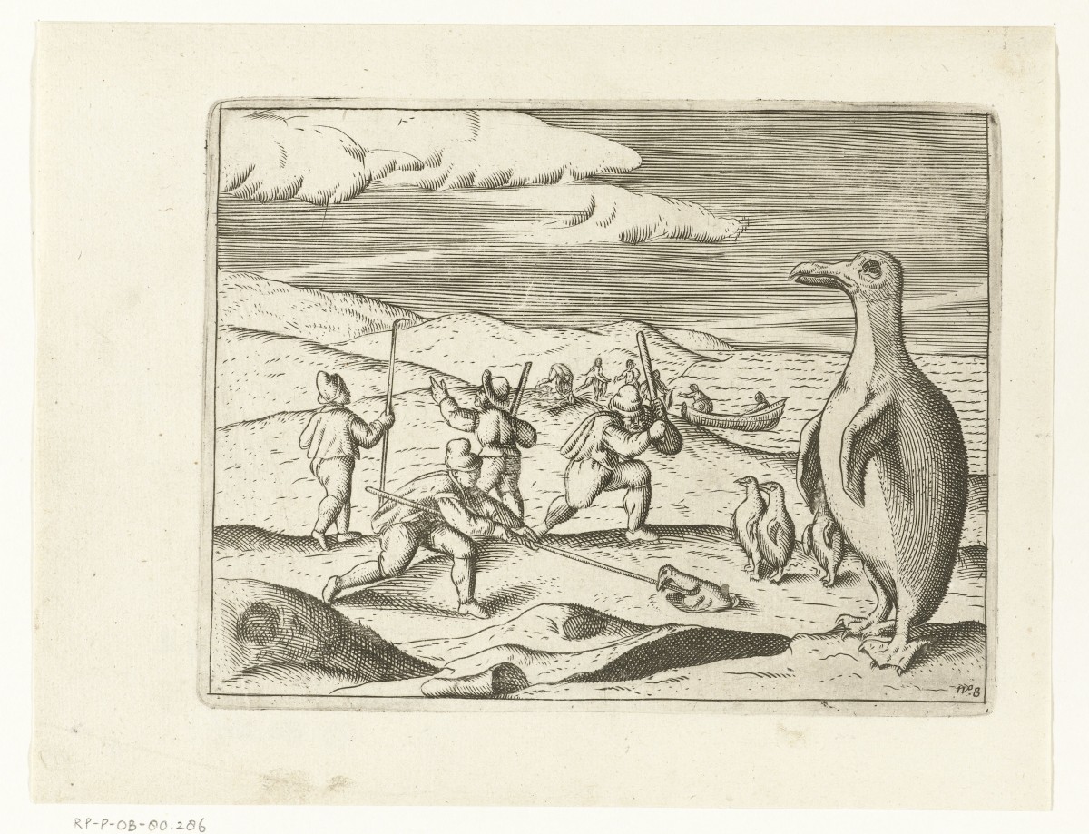 For De Weert, stepping ashore is an adventure filled with many risks. In his log books, he relates encounters with the legendary ‘Patagonian Giants’, describing them as bloodthirsty savages over three metres tall, who feed on raw meet and approach De Weert’s men with spears, standing naked in their canoes. The crew on the Faith decides to leave the straight as quickly as possible. On their way back, they accidentally encounter three unknown islands and are tempted to land when they spot penguins on shore. Unfortunately, due to the direction of the wind, De Weert is unable to reach the islands, although he manages to plot them as small dots on a map.