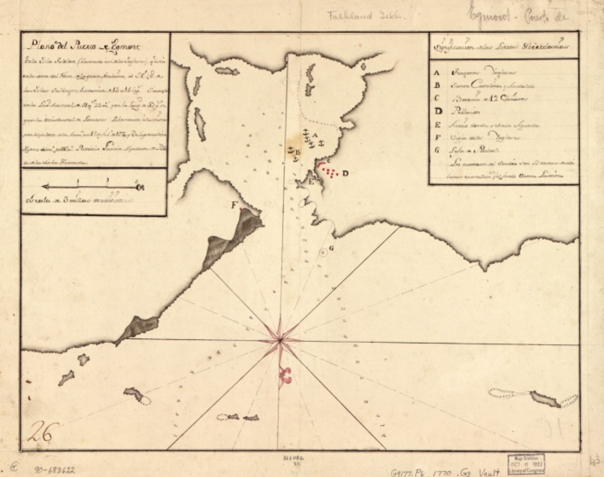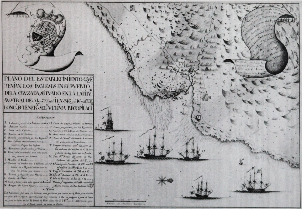 In 1765, colonizers from France and England begin founding settlements on opposite sides of the Falkland Islands, unaware of each other. In 1766, a British officer finds a bottle on West Falkland with a French note in it. What follows is a crisis between England, France and Spain.After the discovery of the bottle, the two parties exchange notes on numerous occasions, protesting each other's presence. This situation leads to a non-violent impasse. Things become more complicated, however, when Spain hears that their ally France has a secret colony on what would be Spanish land under the Treaty of Tordesillas, a treaty that gives Spain the exclusive right to the whole of South America west of the 46th meridian. In the end, the two allies come to a friendly agreement and the French settlement known as Port Louis is handed over to the Spaniards, who rename it Puerto Soledad. The barren islands are not a popular location, however, for the warm-blooded settlers; a priest living there at the time, named Father Sebastian Villanove, writes, ‘I tarry this unhappy desert, suffering everything for the love of God’.
