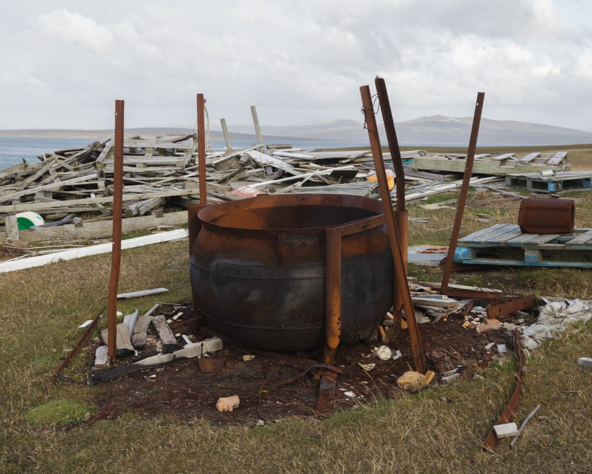 The shortage of fossil fuels and other resources on remote locations such as the Falklands forces inhabitants to improvise. In the years of the first expeditions on the islands, penguins are hunted for food and fuel.In the 18th and 19th centuries, with a growing population and more houses requiring oil for lighting, Falkland Islanders take more serious approaches to penguin hunting. Fatty like geese with skin similar to seals, penguins are likened to “pygmies” or “man-like birds” by early explorers such as Sebald de Weert. Unafraid of humans, they are easy to collect and hunt. Ships take on hundreds of penguins and their eggs for rations. On land, the birds are rounded up into large groups and marched for kilometers, according to some accounts, across the islands. They are then thrown into huge pots, often still alive, where their fat is melted off. Some of the penguins are used to fuel the fire while the others are cooked. Like whales and seals, penguins have a significant amount sub-cuticular fat: half a litre of oil can be extracted from one penguin.