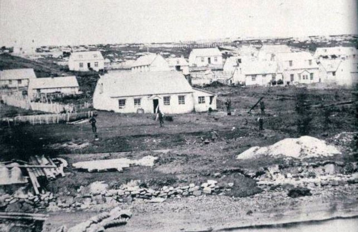 In 1843, Stanley is established as the capital of the Falkland Islands. In its first 50 years, the town faces many challenges, including devastating peat landslides.The remote location of the Falkland Islands makes it difficult for the first British settlers to obtain sources of energy, forcing the islanders to improvise with local resources: penguin oil is used for lamps and a local supply of peat is used to heat their houses. Around 1870, nearly every household has at least one person who cuts and stacks peat. It is challenging work: in addition to the laborious task of cutting the peat, one must also deal with accumulated water in the peat banks. Due to a critical lack of infrastructure, it is almost impossible for inhabitants to transport the large amounts of peat into town. Therefore, the peat cutting is done just above Stanley, on the slope where the capital has been built. In 1878, after more than 30 years of exhausting the ground with peat cutting, the earth on the top of the hill is no longer solid enough to hold the accumulated water, given the lack of an effective drainage system. On Friday, November 29th, 1878, a landslide breaks through the uncut sections of peat, carrying them down the slope right through the middle of the town, which now has a population of approximately 800. At a height of three to four feet, the landslide engulfs houses in Stanley, trapping many inhabitants and preventing access to parts of the town.