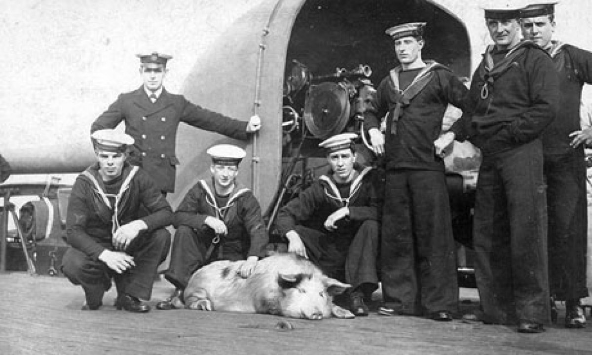 Admiral Fisher’s squadron only catches up again with the SMS Dresden at Robinson Crusoe Island, 600 kilometres off the coast of Chile. On the 15th of March, 1915, the armoured cruisers HMS Glasgow and HMS Kent open fire on the German ship. Unable to escape, the crew scuttles the SMS Dresden. A pig, abandoned on the sinking ship, miraculously finds its way on deck and survives the wreck. After spending two hours in the water, thereby disproving the theory that a pig kills itself while attempting to swim, the pig is rescued by the British crew and affectionately named after the German Grand Admiral, Alfred von Tirpitz. For four years, the animal serves as the HMS Glasgow’s mascot until it is purchased by William Cavendish-Bentinck, the Sixth Duke of Portland, who has it stuffed and donates it to the Imperial War Museum in London, where it remains to this day.